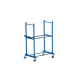 Structura din otel a carucioarelor permite amplasarea in cadrul rafturilor anvelope ce au diametrul cuprins intre 540-780mm. In functie de preferintele dvs., aveti posibilitatea de a opta intre modele cu suprafata zincata sau acoperita cu un strat de vopsea pulbere de culoare albastra. Aceasta este rezistenta la zgarieturi sau lovituri. Cele 4 roti au diametrul de 125mm, unde 2 dintre ele sunt fixe, iar 2 au sistem de franare. Datorita fasiilor de cauciuc plin cu care sunt acoperite, acestea nu lasa urme pe podea. Prevazut cu 2 etaje, inaltimea totala a caruciorului atinge 1800mm. Latimea acestuia este de 800mm. Manevrarea se realizeaza cu ajutorul unui maner din teava. Spre deosebire de modelul prezentat, cel aditional este prevazut numai cu un singur raft.