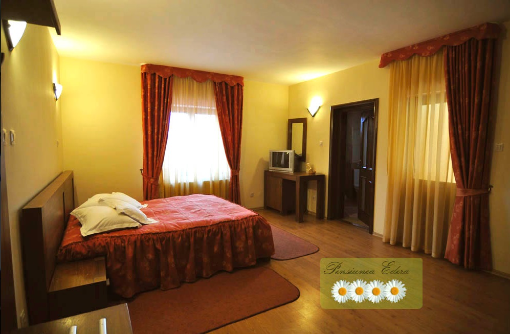 Pensiunea Edera va pune la dispozitie un numar de 24 de locuri de cazare. Alegeti una din cele 10 camere matrimoniale sau duble sau puteti opta pentru unul din cele doua apartamente mobilate si utilate dupa cele mai inalte standarde. Camerele sunt dotate cu baie proprie, acces nelimitat la internet, televizor si loc de parcare. Puteti profita de discounturi sau tarife negociabile daca optati pentru un sejur ce depaseste 3 nopti, sau daca sunteti mai multe grupuri si doriti cazarea in cadrul acestei pensiuni. Regimul de 4 margarete pe care il ofera pensiunea Edera reprezinta garantia ca dvs. veti avea parte de servicii de calitate, si asistenta din partea unei echipe de profesionisti pe tot parcursul sederii.
