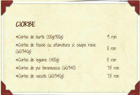 Meniu ciorbe Bonanzza Brasov