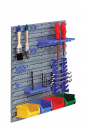 In cazul in care atelierul dvs. este plin de dulapuri cu scule si alte tipuri de mobilier de acest gen, o alternativa simpla si eficienta pentru continuarea depozitarii sculelor si instrumentelor de care aveti nevoie este amplasarea pe suprafata peretilor a panourilor pentru pastrarea acestora din urma. Acestea sunt confectionate din materiale rezistente, iar in functie de cerintele si nevoile dvs., puteti opta pentru panouri realizate din tabla, sau panouri din acest material combinat cu polita din fag. De asemenea, dispunem si de modele din tabla de otel, lacuite sau zincate. Placa acestui tip de panou este perforata, avand latimea de 814mm, si inaltimea de 480mm. Pentru aranjarea unui numar mai mare de scule si unelte in cadrul acestui tip de panou, va oferim modelul cu 3 placi si 15 suporturi, pentru ordonarea si organizarea eficienta a acestora din urma.