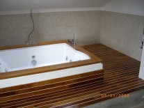 Optand pentru acest tip de pardoseala, poti uita de gresia rece, conferind baii tale un plus de eleganta, rafinament, caldura si inclusiv, durabilitate intrucat parchetul comercializat de catre societatea noastra este din lemn masiv tratat special pentru rezistenta la umezeala.