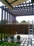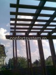 Daca vreti un loc de odihna si relaxare cu adevarat special, noi va punem la dispozitie pergola lemn stratificat, un adevarat element arhitectural. Aceasta pergola are efect decorativ si reuseste sa creeze o ambianta placuta, oferind personalitate casei si gradinii dumneavoastra. Noi executam pergole cu finisaje deosebite realizate din lemn stratificat, lacuit cu vopsele de calitate superioara , care il vor proteja pe o durata lunga de timp. Acestea sunt cu adevarat rezistente impotriva soarelui, vantului, ploii, zapezii si altor factori externi, iar dumneavoastra veti avea propria oaza de relaxare in mijlocul naturii , fara sa fiti deranjati de nimic. Aceste pergole sunt o idee minunata de petrecere a timpului liber cu familia si prietenii in natura, fara sa va temeti de razele soarelui. In functie de dimensiunile cerute, noi vom executa intocmai pergola comandata si va asiguram ca veti fi incantati de rezultate.