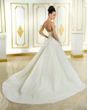 Cosmobella 7737 este intruchiparea perfecta a clasicei rochii de printese, cu straturi de tull ce confera volum acesteia, si corset din dantela, ce pune in valoarea talia. Cu trena si fara maneci, este o rochie de mireasa simpla, dar de efect. Mireasa poate purta fara nicio problema un voal, accesoriu care in unele cazuri da impresia de "prea mult".