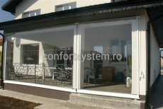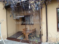 Confort System va pune la dispozitie rulouri transparente realizate din cristal, potrivite pentru orice anotimp. Elegante, aceste rulouri transparente sunt asemanatoare copertinelor cu rulare in plan vertical si se potrivesc in orice decor. Sunt indicate pentru anotimpurile primavara-toamna, dar si pe parcursul iernii. Acestea vor prelungi durata de functionare a terasei, ceea ce constituie un adevarat avantaj in cazul restaurantelor, cafenelelor sau chiar celor care locuiesc la casa. Manipularea este simpla si rapida, iar actionarea sistemului se face prin intermediul unei manivele cu ax fix. In functie de nevoile dumneavoastra, suprafata de protectie a acestora poate ajunge si pana la trei metri, caz in care va fi nevoie de console mari pentru o mai buna rulare a materialului. Acestea au o durata de viata foarte indelungata, datorita faptului ca sunt realizate din materiale de calitate superioara.