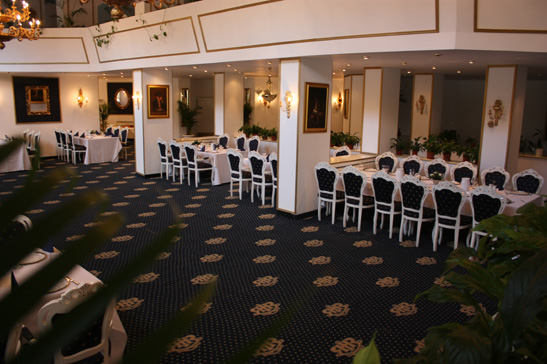 Renovat si decorat in stilul "Imparatul Romanilor" salonul albastru are 350 de locuri si ofera posibilitati de amenajare pentru servirea mesei, pentru spectacole sau conferinte. Salonul albastru e locul ideal pentru reusita oricarui eveniment.