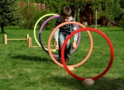 Un astfel de set are in componenta o serie de piese: 4 cercuri viu colorate cu dimensiuni diferite, confectionate din placaj de fag, 4 bare, 4 piese de forma semisferica realizate din lemn de fag masiv ce servesc drept suporturi pentru cercuri si bare, precum si alte 6 astfel de piese, cu forma dreptunghiulara prevazute cu gauri pentru reglarea inaltimii acestora din urma. Greutatea tuturor pieselor componente ajunge la valoarea de 10,74kg.