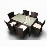 In cadrul unor astfel de seturi terasa, pot fi incluse piese precum: mese, scaune, tabureti, canapele modulare, fotolii, coltare si sezlonguri, numarul de elemente si combinatiile de produse disponibile variind in functie de set. Desi componenta difera, toate obiectele de mobilier au in comun, pe langa design-ul modern si aspectul elegant pe care il inspira, si cadrul din aluminiu, imbracat in tehno-rattan.