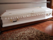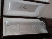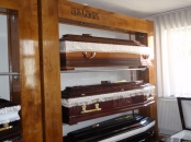 Societatea Caritabil va ofera modele de sicrie in Sibiu construite din stejar si alte esente de lemn, tratate cu lac si eventual vopsite in alb. Lenjeria fina folosita la interior poate iesi si in afara, lasata in valuri elegante, usor sidefate, sau prinsa la margine cu elastic, pentru a fi stabila. Sicriele sunt dispuse pe margini cu manere metalice ergonomice, pentru a fi usor de transportat.