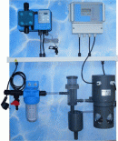 Componentele sistemelor respective pot include, tinand cont de model, urmatoarele: debitmetru emitator de impulsuri, pompa dozatoare, lance de aspiratie, kit pentru montaj pe perete, recipient de stocare hipoclorit de sodiu, display digital pentru afisare si programare, optiuni programare profesionala, filtru 50 microni pentru apa curata de intrare, sistem preasamblat si gata de functionare, s.a.m.d.